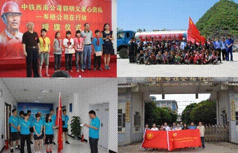 此外,柳州“三桥一路”项目成立了郭明义爱心分队并举行了授旗仪式,全体团员庄严宣誓:以郭明义为榜样,服务社会、热心公益,大力弘扬雷锋服务人民、助人为乐的奉献精神,从自身做起、从身边做起、从小事做起,积极投身到志愿者服务行列中来。