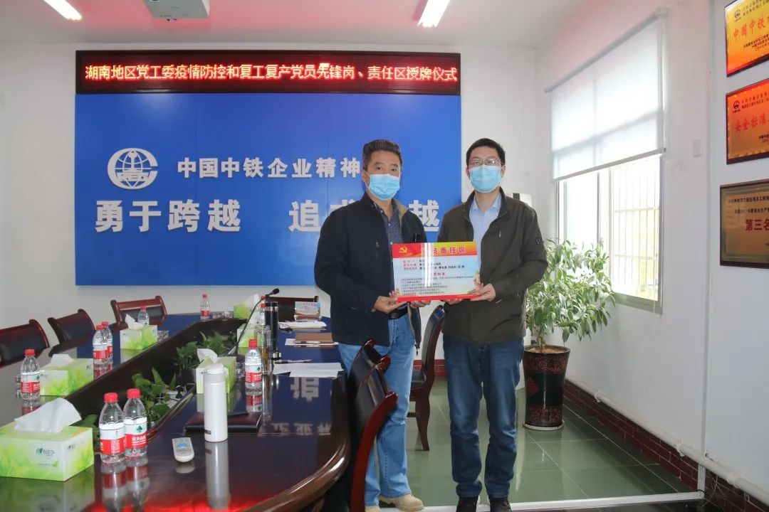 3月17日、18日,党工委领导班子在中南公司、衡阳项目指挥部对相关党员责任区和党员先锋岗进行了授牌。