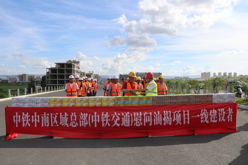 7月,集团公司副总经理刘宁到汕揭项目为在高温地区作业的一线建设者送清凉,将饱含关怀的清凉用品递给每一位一线建设者,并仔细了解、问候他们的工作生活情况。