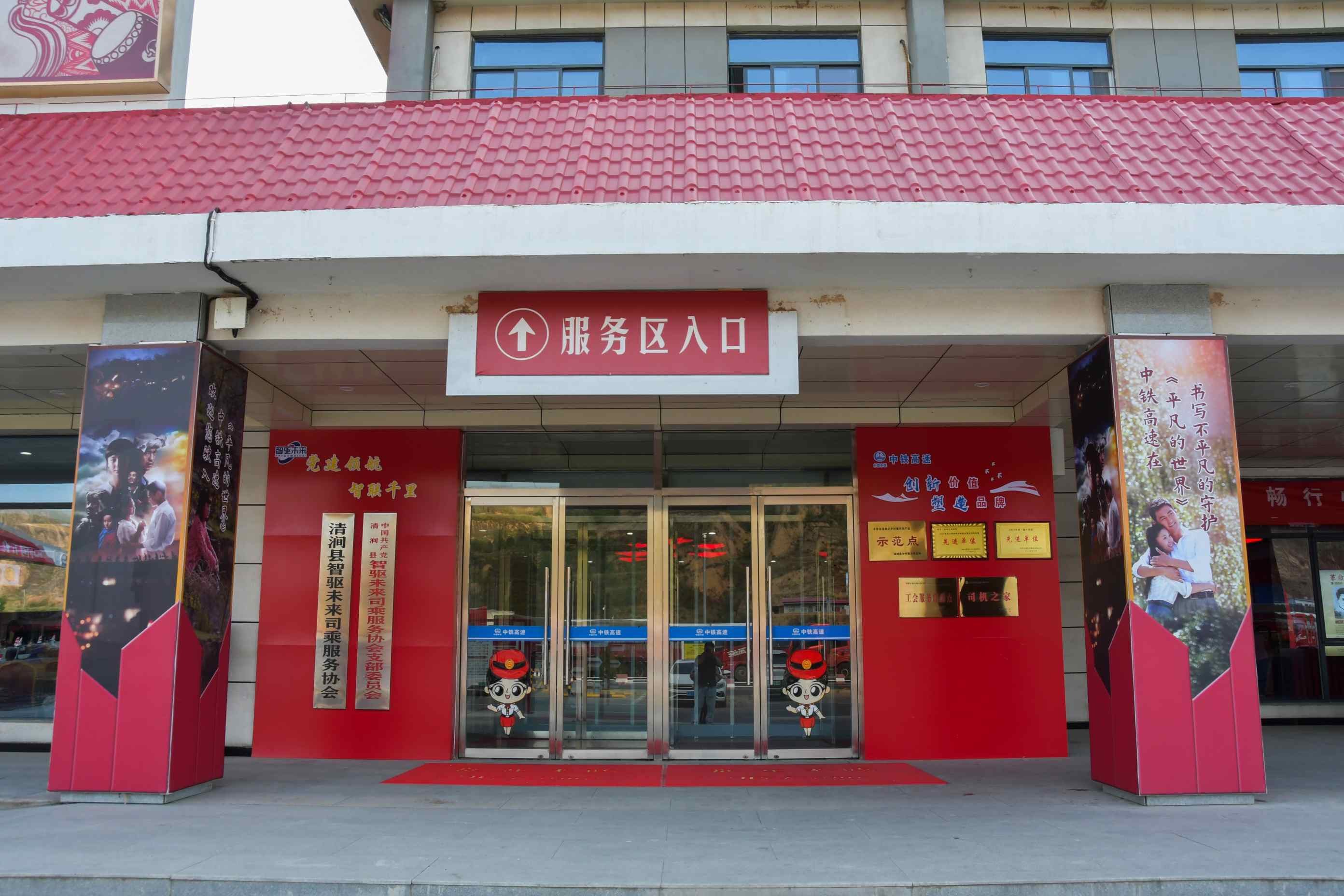清涧北红色主题服务区位于中铁交通绥延高速公路沿线,总占地面积达 38.6 亩。服务区以 “红色驿站” 为精准功能定位,深度融合中铁交通企业文化与陕北革命精神,构建起集旅途保障、红色教育传承、非遗文化体验于一体的复合型交通服务枢纽,成功将高速公路服务区升级为红色文化传播的 “移动课堂”,成为绥延高速沿线具有标志性的文化服务节点。