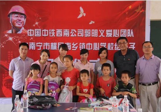 6月29日上午,公司党委副书记、纪委书记兼工会主席徐洮刚带领公司6名“郭明义爱心团队”青年志愿者代表前往南宁市横县南乡镇中心学校,举办了爱心帮扶结对子启动仪式,并送去了羽毛球拍、乒乓球拍等体育器材,书包、字典、读物、学习笔记本等学习用品。与来自各乡、村学校的10余名贫困学生及家长进行了亲切座谈,详细了解贫困学生的学习、家庭等情况,并表示集团公司爱心团队愿尽最大努力帮助贫困孩子完成学业。