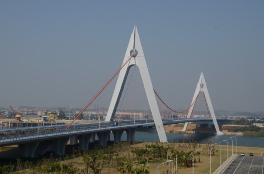 双拥大桥为我国第一座单主缆斜吊杆地锚式悬索桥,全长1.938公里,主桥跨度430米,建安总投资8.19亿元,为A塔单索面钢箱梁悬索桥,桥面设双向六车道,宽38米。双拥大桥合同期内上报的《A形三维变截面钢箱主塔施工工法》、《510m钢箱梁单端多点边疆顶推施工工法》和《溶蚀透水地质条件下锚碇深基坑施工工法》均获得省部级工法,同时还被评为国家级“3A安全文明工地”及柳州市“安全文明工地”。